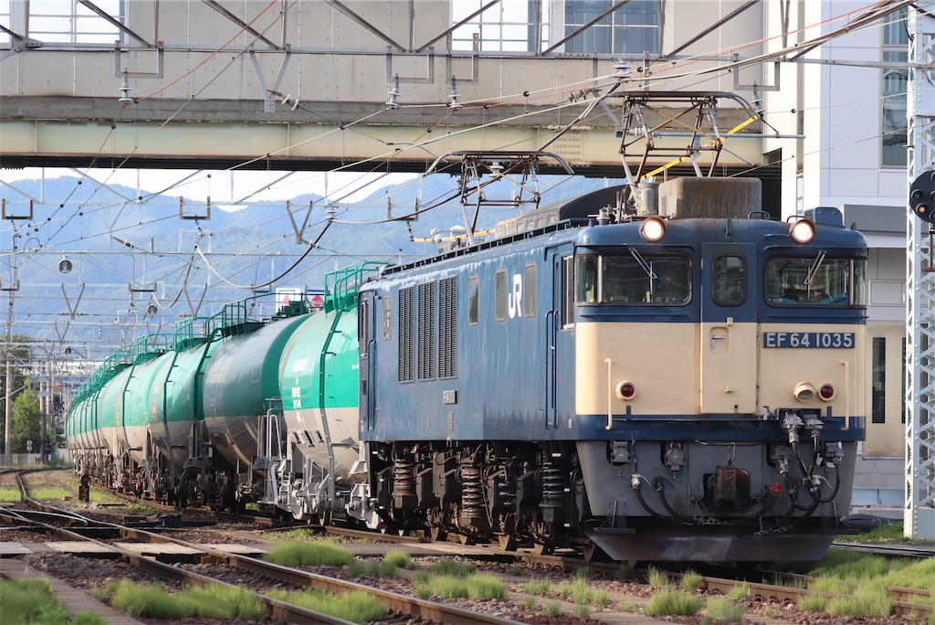 2022-07-06 8878レ EF64単機で牽引 南松本駅 EF64 EH200 6月28日に8878レがEF64単機で牽引だったので南松本に見に行ってきました。 篠ノ井にて80レ牽引予定のEF64 1017が故障したためだと思われます。 8878レ EF64 1035+タキ(所定EF64 1045+ EF64 1035) 滅多に単機での牽引は見れないので撮れてよかったです! 因みに EF64 1045は故障したEF64 1017の代わりに南松本から80レを牽引しました(北長野-南松本間は送り込まれたEH200-19が牽引) (2022.6.28撮影)